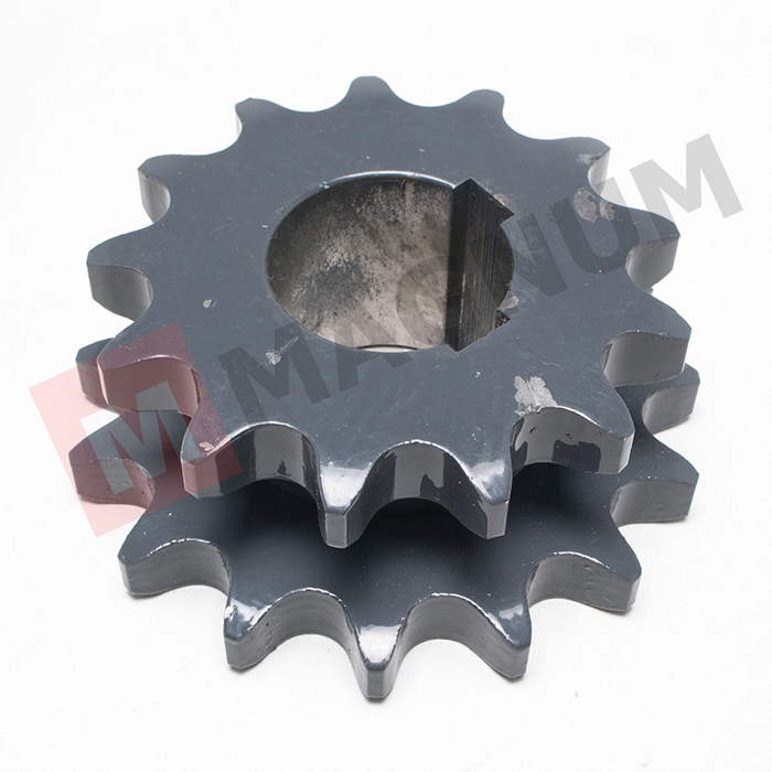 Изделие в виде двурядной звездочки на общем валу, с пазами под шпонку в центральном отверстии.